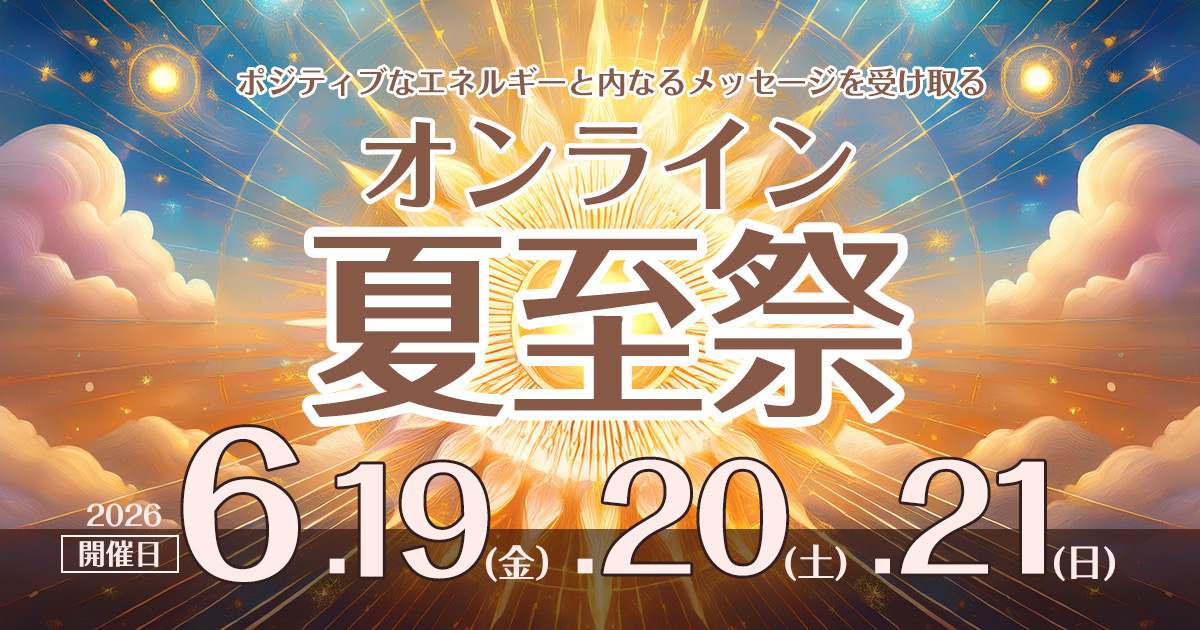 2026年6月19日(金)・20日(土)・21日(日)に3日間の「夏至祭」がオンラインで開催されます!リーディング、鑑定、ワークショップなど様々なメニューを体験できます。